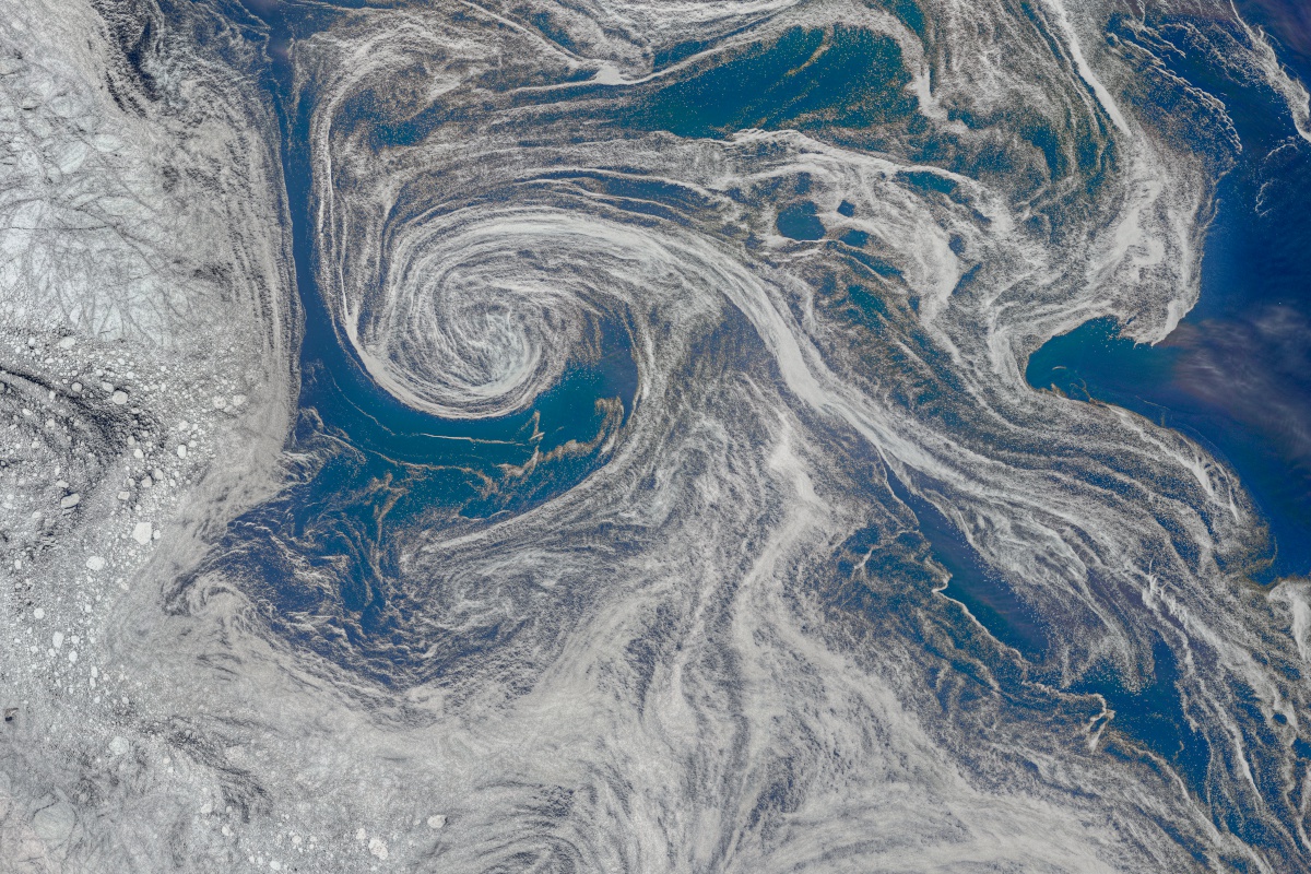 The above view of swirling sea ice was captured by Landsat 8 off the coast of Labrador on April 30, 2020. Click on it to get a larger version.